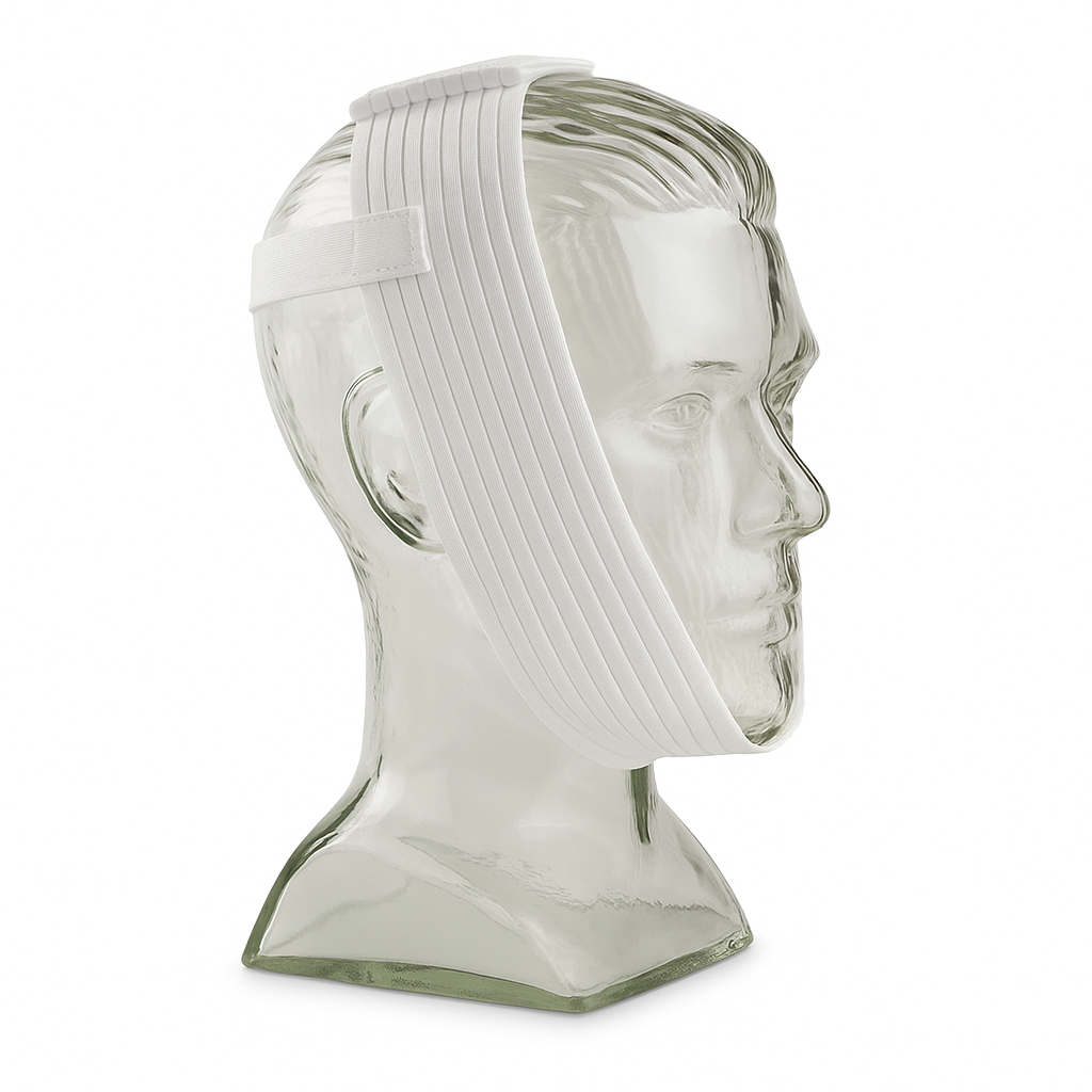 The CPAP Store USA White Deluxe Chinstrap has an extra wide support band and two optional stability straps. It’s the perfect alternative to a standard CPAP & BiPAP chinstraps. The Super Deluxe Chinstrap is available comes in a standard size. Chinstraps used by CPAP & BiPAP users to help keep the mouth closed during the sleep apnea therapy. They can help solve problems with mouth breathing and mouth leak and thus can encourage therapy compliance and better overall therapy results.