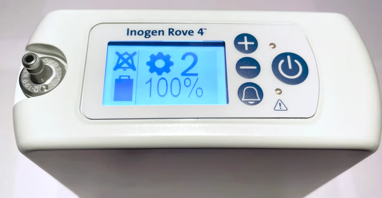The Inogen Rove 4® Portable Oxygen Concentrator is designed for oxygen users seeking a lightweight, travel-friendly solution without compromising performance. Weighing just 2.9 pounds with the standard battery, the Rove 4 provides dependable oxygen therapy in a sleek, portable format — ideal for those with active lifestyles. The Rove 4 is equipped with Inogen’s Intelligent Delivery Technology®, which automatically adjusts oxygen delivery based on your breath rate and activity level: